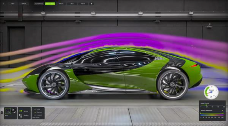 さらに、NVIDIAが提供する「Omniverse Blueprint」は、CAEツールとの連携によって物理シミュレーションを高速化し、リアルタイムでの可視化を可能にする設計支援環境です。航空宇宙・自動車・製造・エネルギー分野などにおいて、合成データの生成やAIトレーニングの前段階であるシミュレーション精度と効率を大幅に向上させます。流体解析ソフト「Ansys Fluent」と連携した場合、25億セル規模の自動車シミュレーションを320基のGPUで約6時間で完了します。従来のCPU環境では約1カ月かかる処理を大幅に短縮しています。