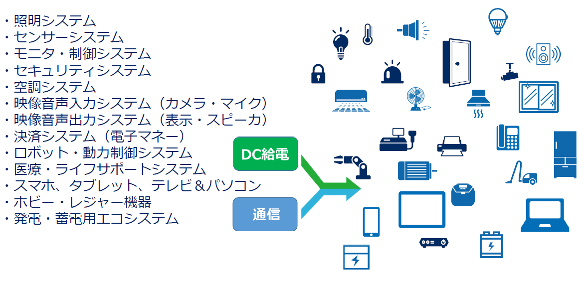 さらに、DC給電を行うために、地域ごとの電力事業者の電源をそのまま使わずに送電できるので、電源のソースを自由に変更できるという大きなメリットがあります。再生可能エネルギーとの親和性も高く、環境負荷の低減に貢献できる技術です。