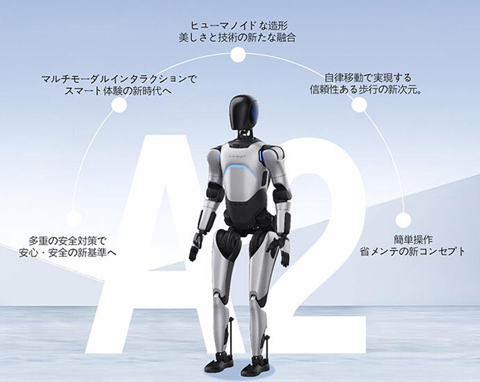 2足歩行のA2ロボットは、歩いたり走ったりすることができ、VLMモデルを搭載して会話や案内も可能です。店舗、カーディーラ、ショールーム、展示会などで案内役として多数導入されています。