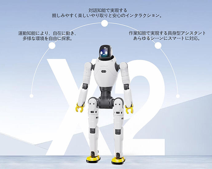 2足歩行のX2ロボットは、可愛らしいデザインで若年層やイベント参加者に人気があり、老人ホームなどからの問い合わせも多く、会話や簡単な動作(薬のピックアップなど)が可能です。