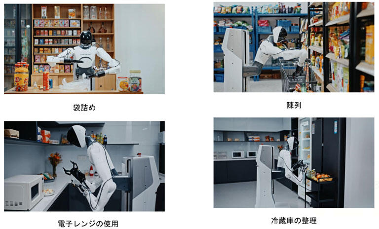 上海のデータセンタで収集したさまざまなデータを活用し、ファインチューニングを実施しています。その結果、コンビニのレジ作業、商品陳列作業、電子レンジや冷蔵庫の使用など、さまざまな作業がすでに可能になっています。これらは単なる実験レベルではなく、実際の業務環境での使用を想定した実践的なタスクです。データ収集に注力することで、基盤モデルの品質が向上し、その後のファインチューニングで少量のデータでも効果が出せるようになっています。