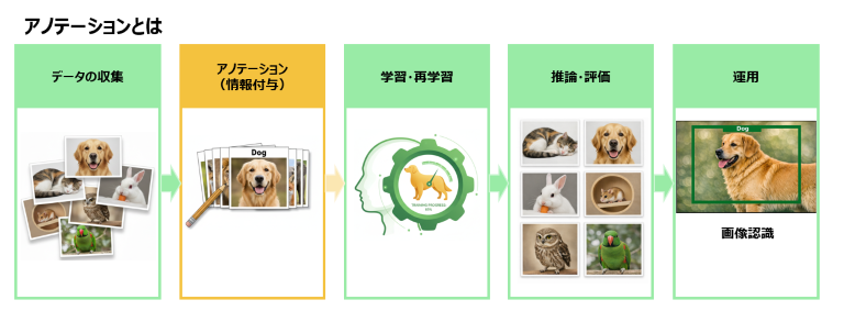 本記事では、AI開発の全体の流れ、「情報収集 → アノテーション → 学習 → 推論 → 再学習」の流れを、初心者の方にも分かるように解説します。
