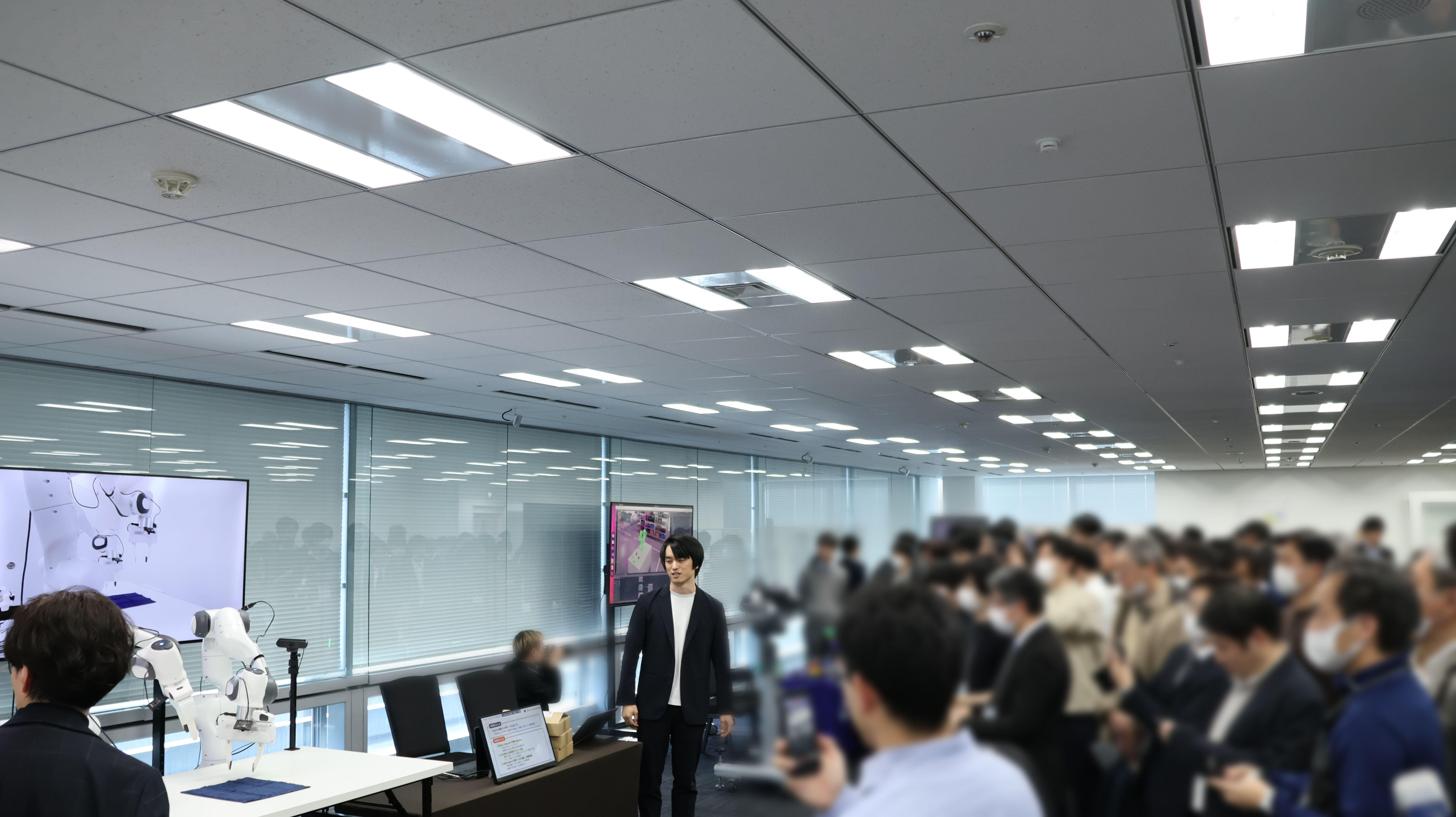 今回のイベントでは各企業によるセミナと合わせて、ヒューマノイドロボットや5本指ハンドの動体展示、デジタルツインとロボティクスの融合によるSim2Realなどの展示もご用意いたしました。展示はセミナ会場とは別室に設け、休憩時間および全セミナ終了後のネットワーキングの時間にご覧いただく形式としました。