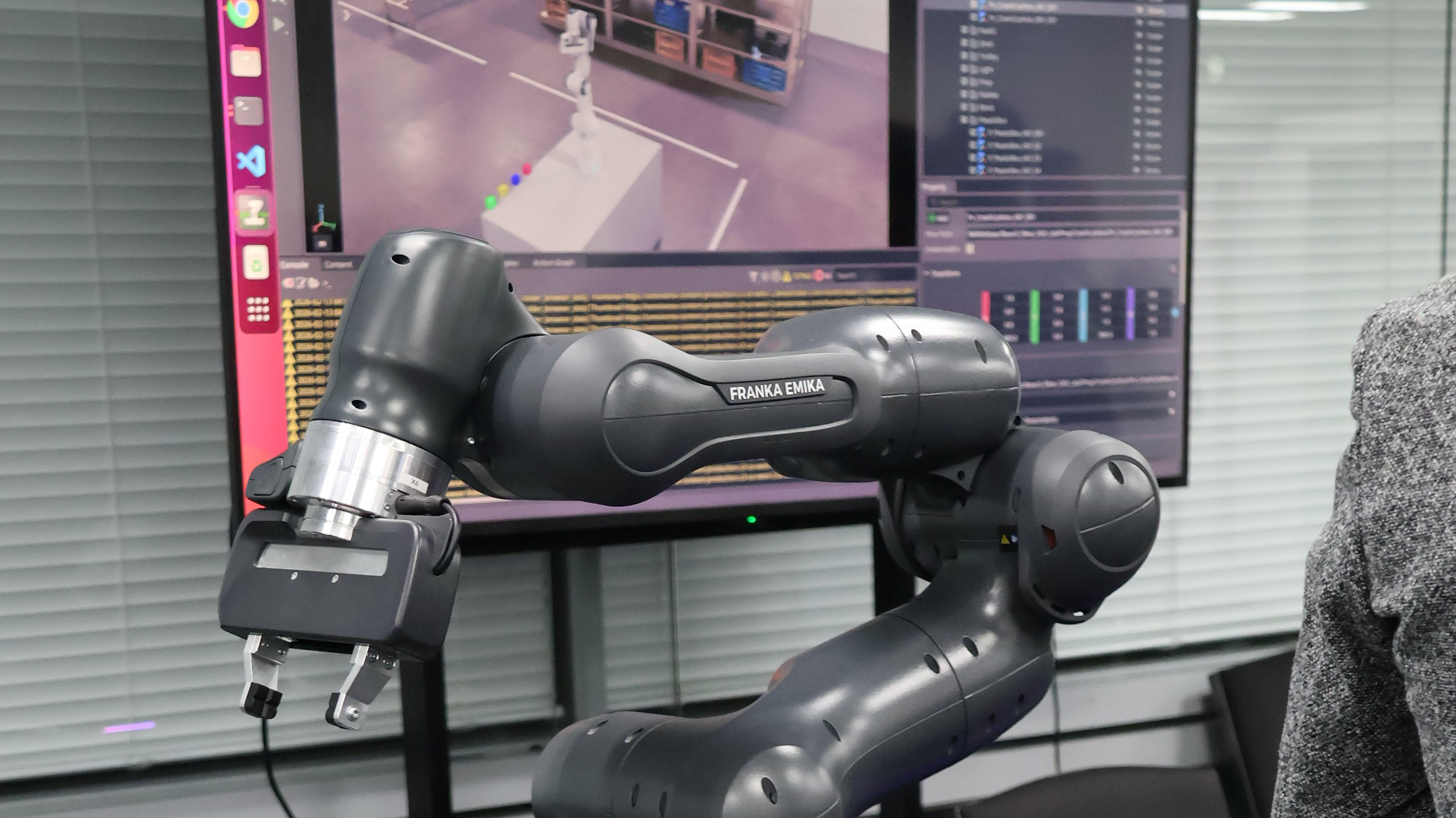 NVIDIA Isaac Sim を用いたロボットアームの Sim2Real 手法を解説。URDF + OpenUSD による高忠実度デジタルツイン環境で学習・検証し、制御周期のズレや座標誤差には ROS2補間処理や模倣学習 を活用。シミュレーションで得た挙動を実機 Franka にスムーズに反映するワークフローと、“シミュレーション主導の開発”の重要性を示しました。